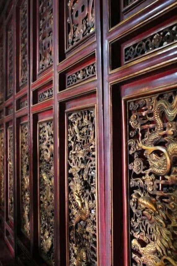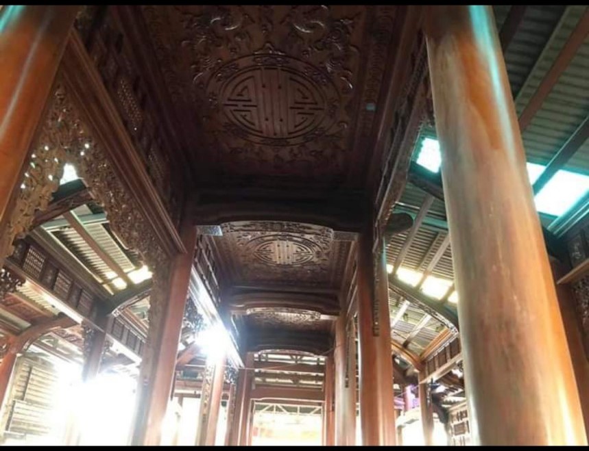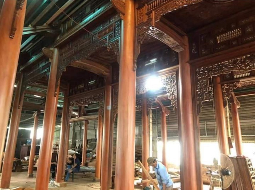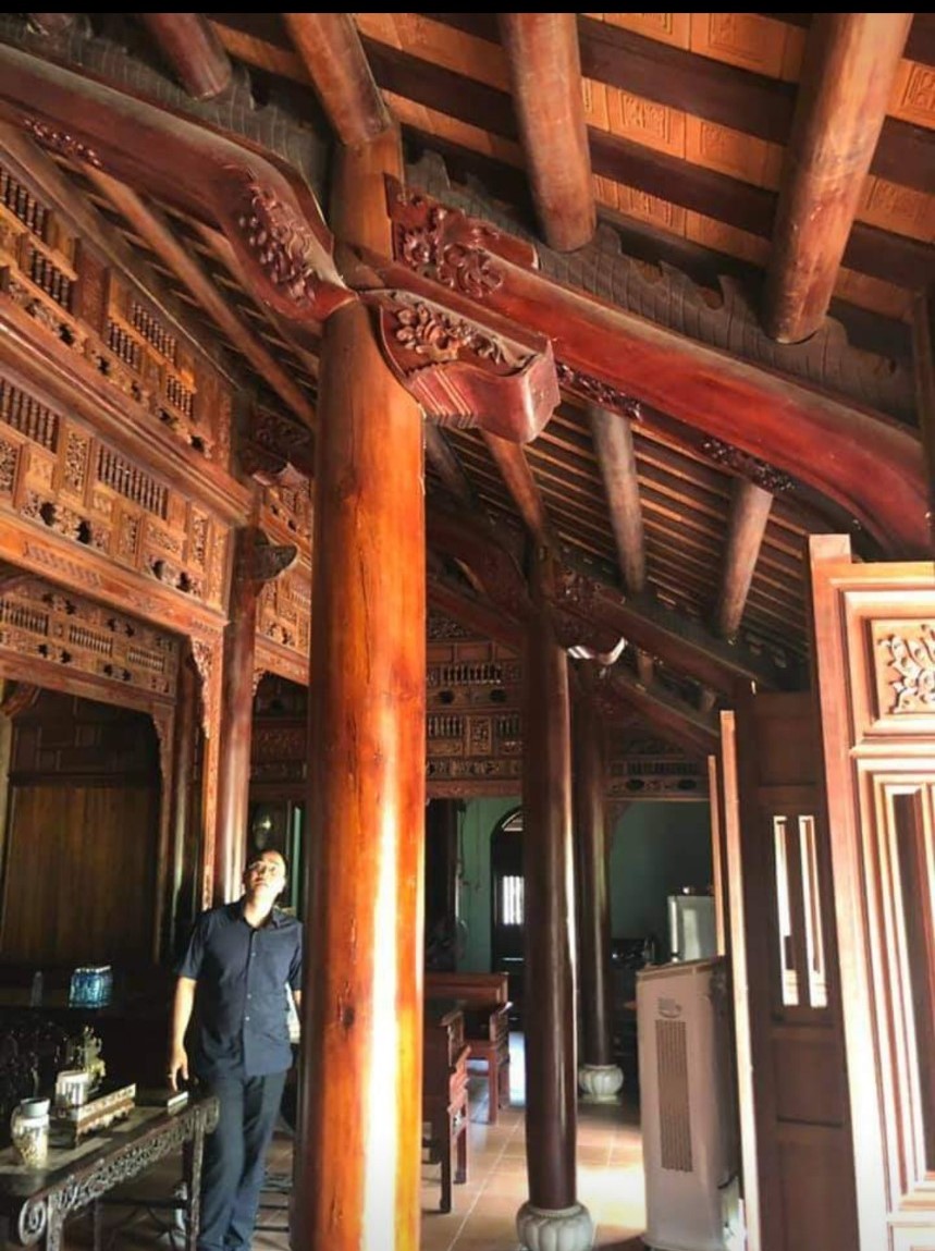 Bốn chín hàng cột lim già vài trăm năm tuổi cùng hàng trăm khối gỗ quý tạo thành hình hài ngôi nhà gỗ có một không hai. 60 cây vàng được giát vào hoành phi,...