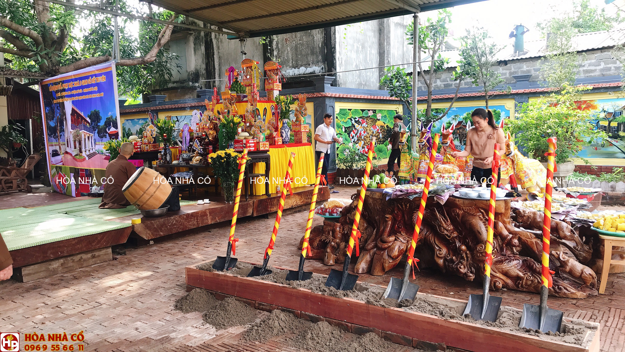 Ngày đẹp công ty chúng tôi và gia chủ làm lễ động thổ và phạt mộc nhà gỗ kẻ truyền 5 gian tại Hà Nội