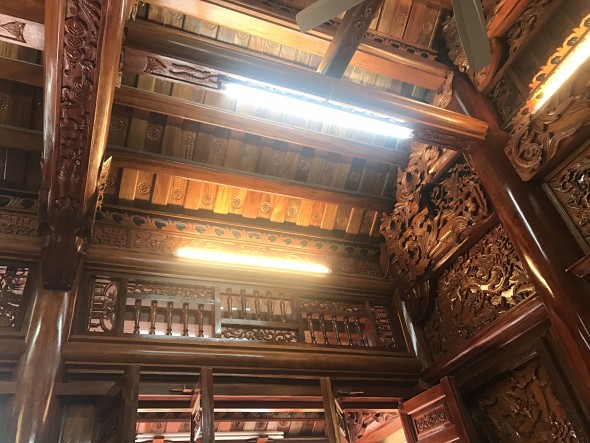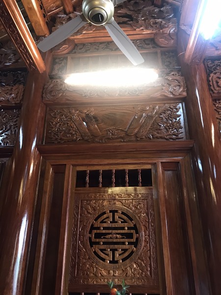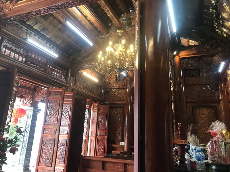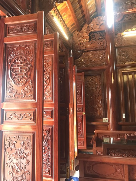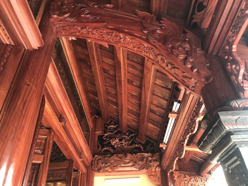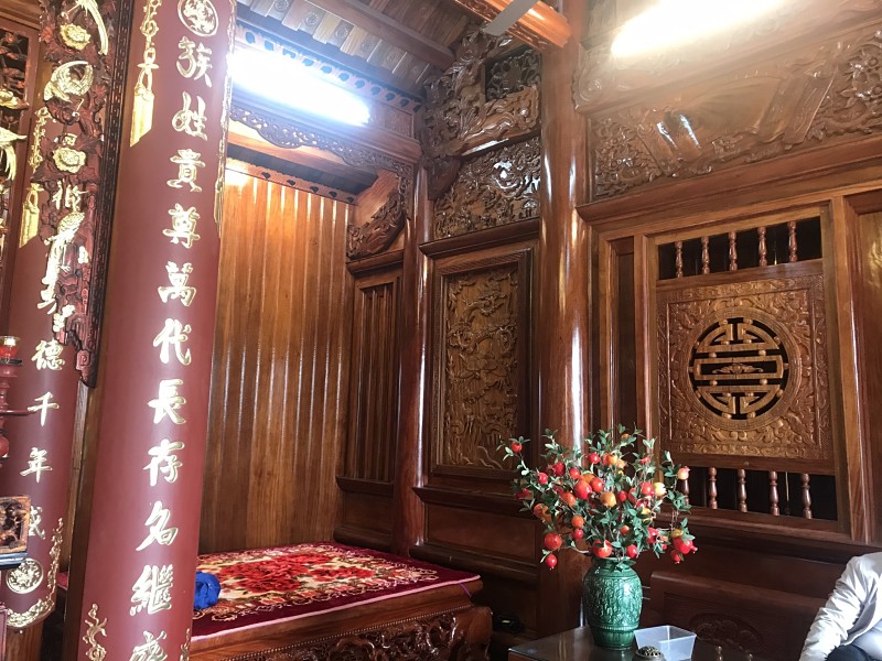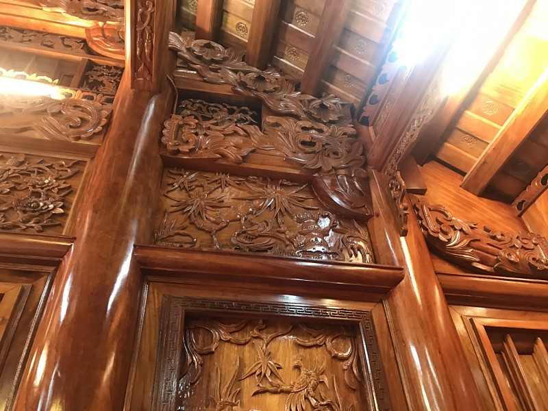 Bốn chín hàng cột lim già vài trăm năm tuổi cùng hàng trăm khối gỗ quý tạo thành hình hài ngôi nhà gỗ có một không hai. 60 cây vàng được giát vào hoành phi,...