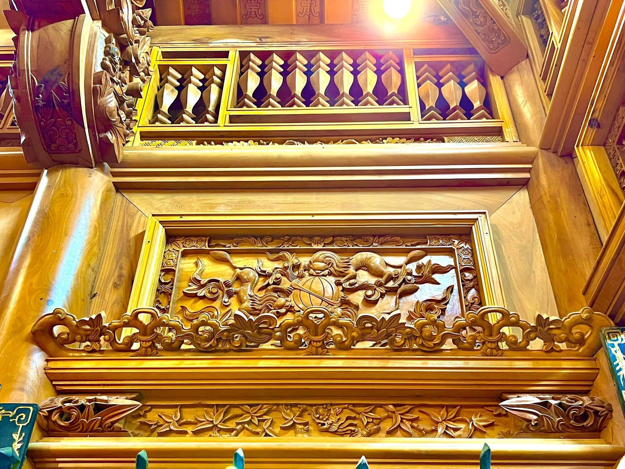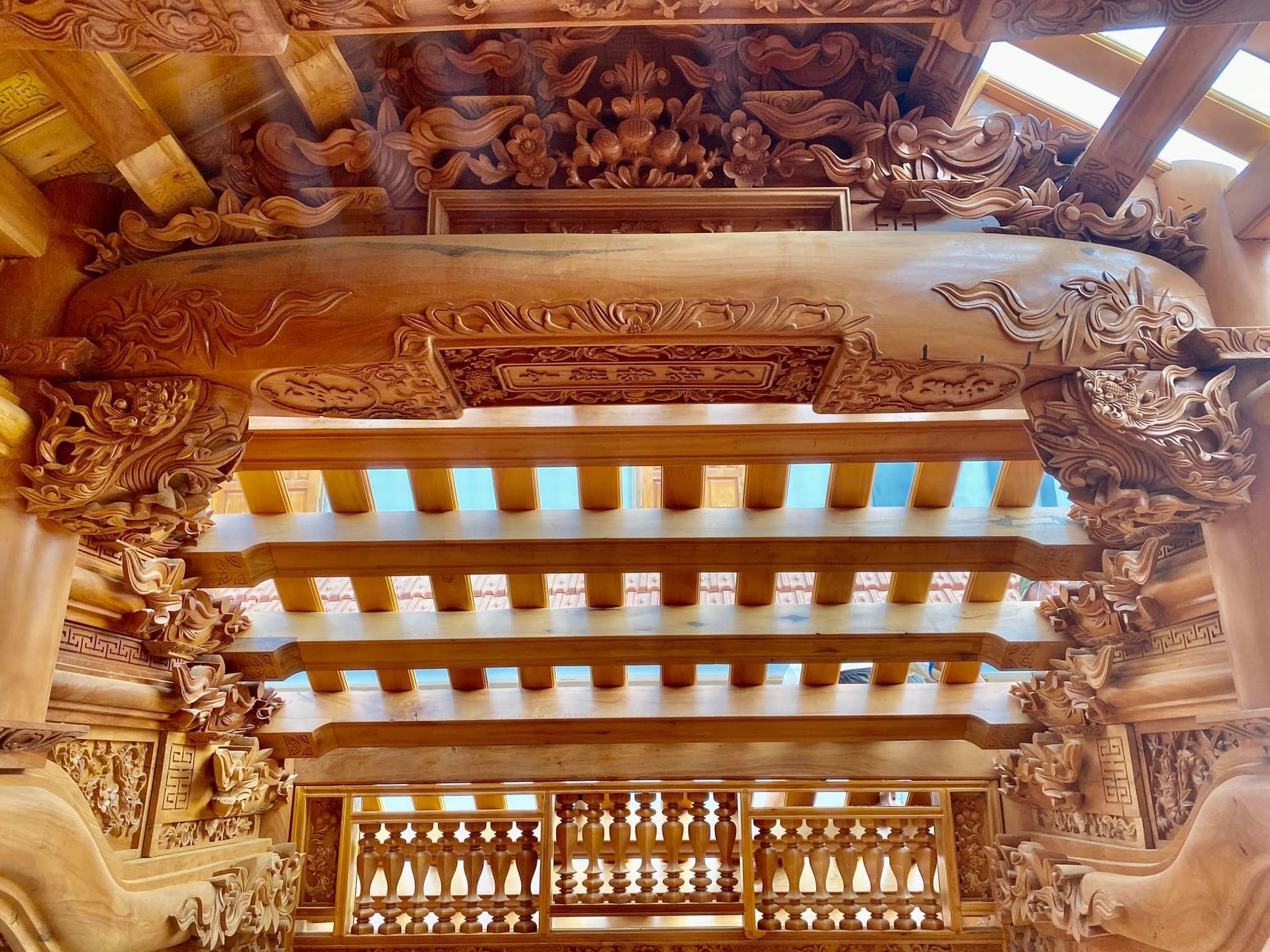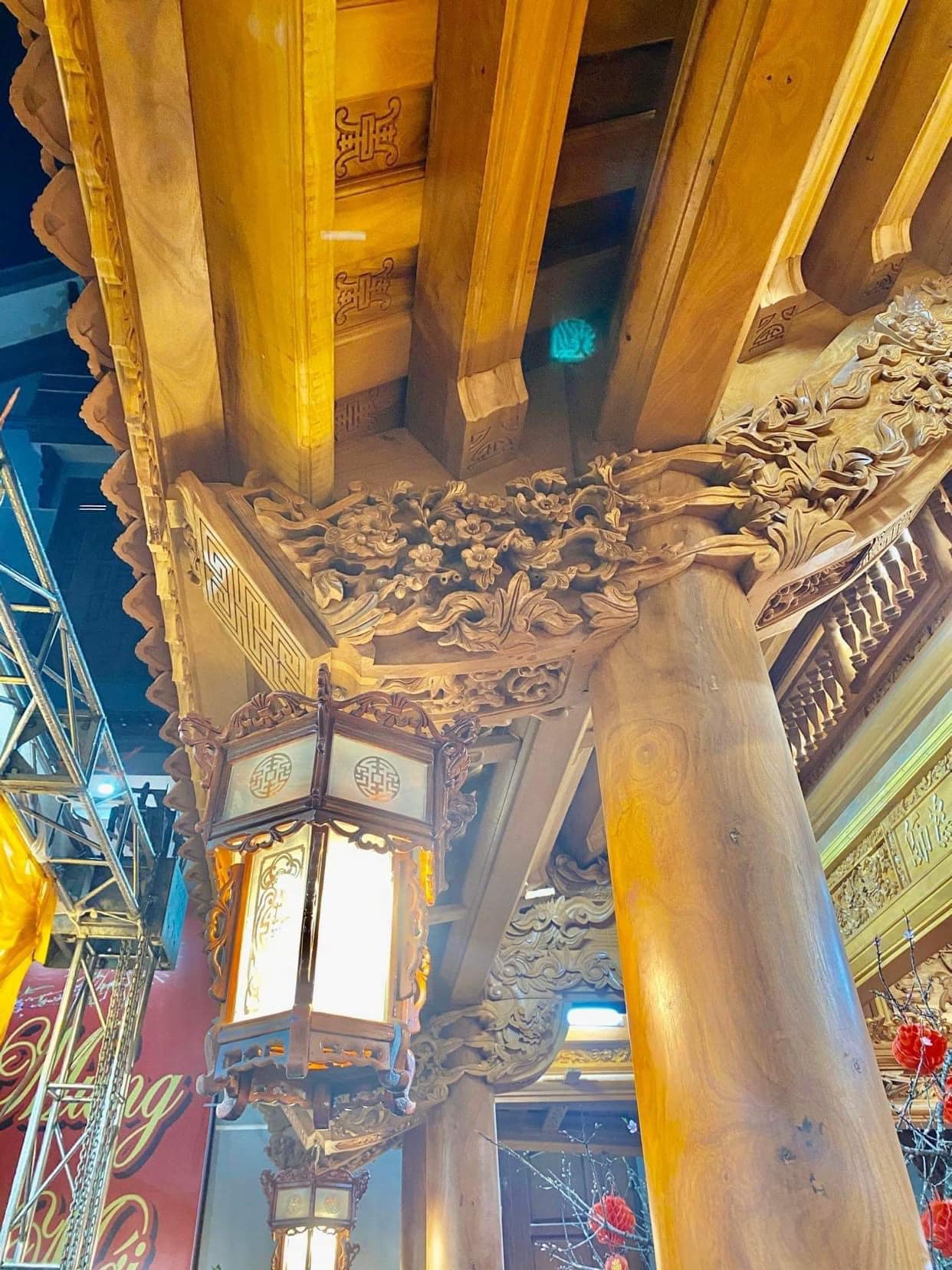 Bốn chín hàng cột lim già vài trăm năm tuổi cùng hàng trăm khối gỗ quý tạo thành hình hài ngôi nhà gỗ có một không hai. 60 cây vàng được giát vào hoành phi,...