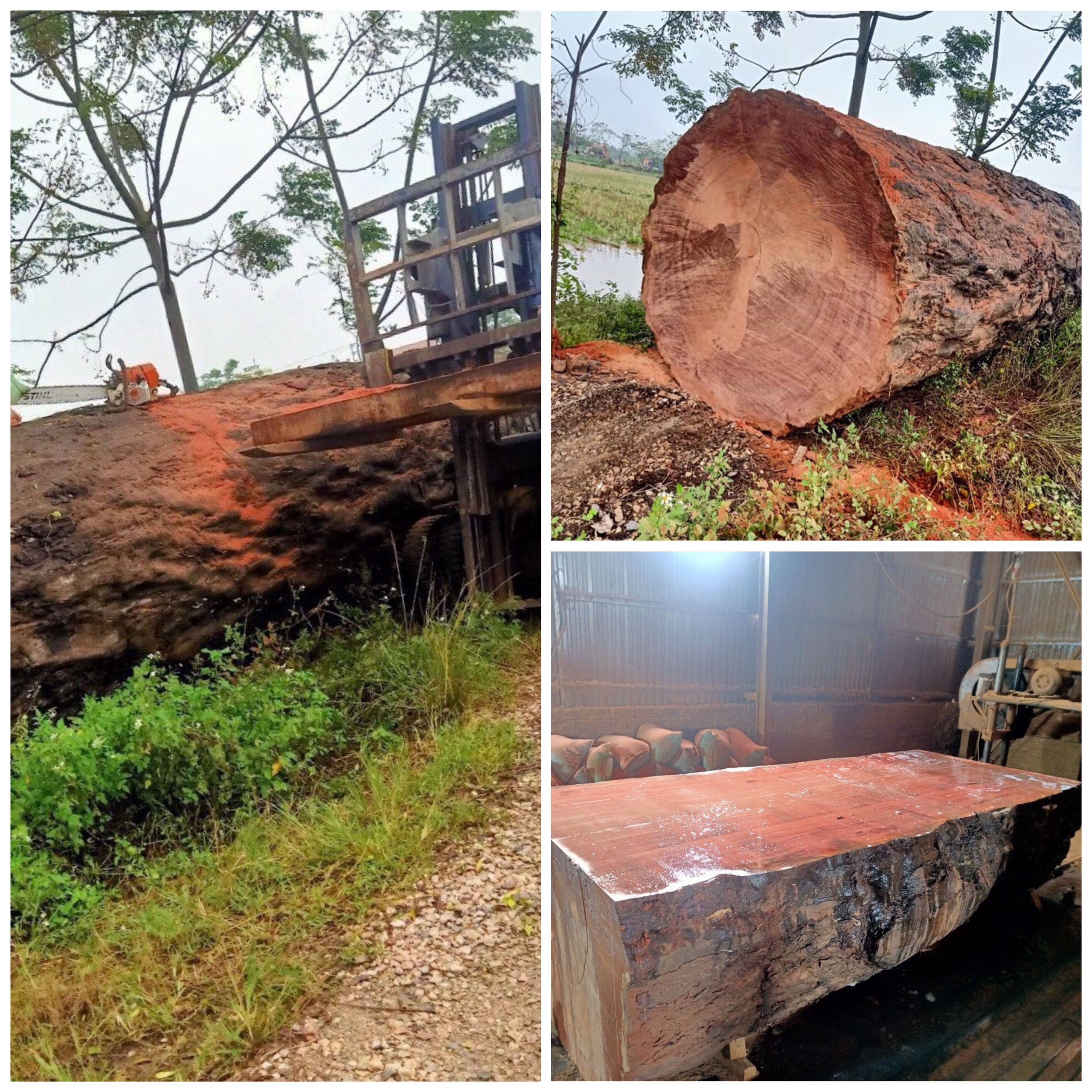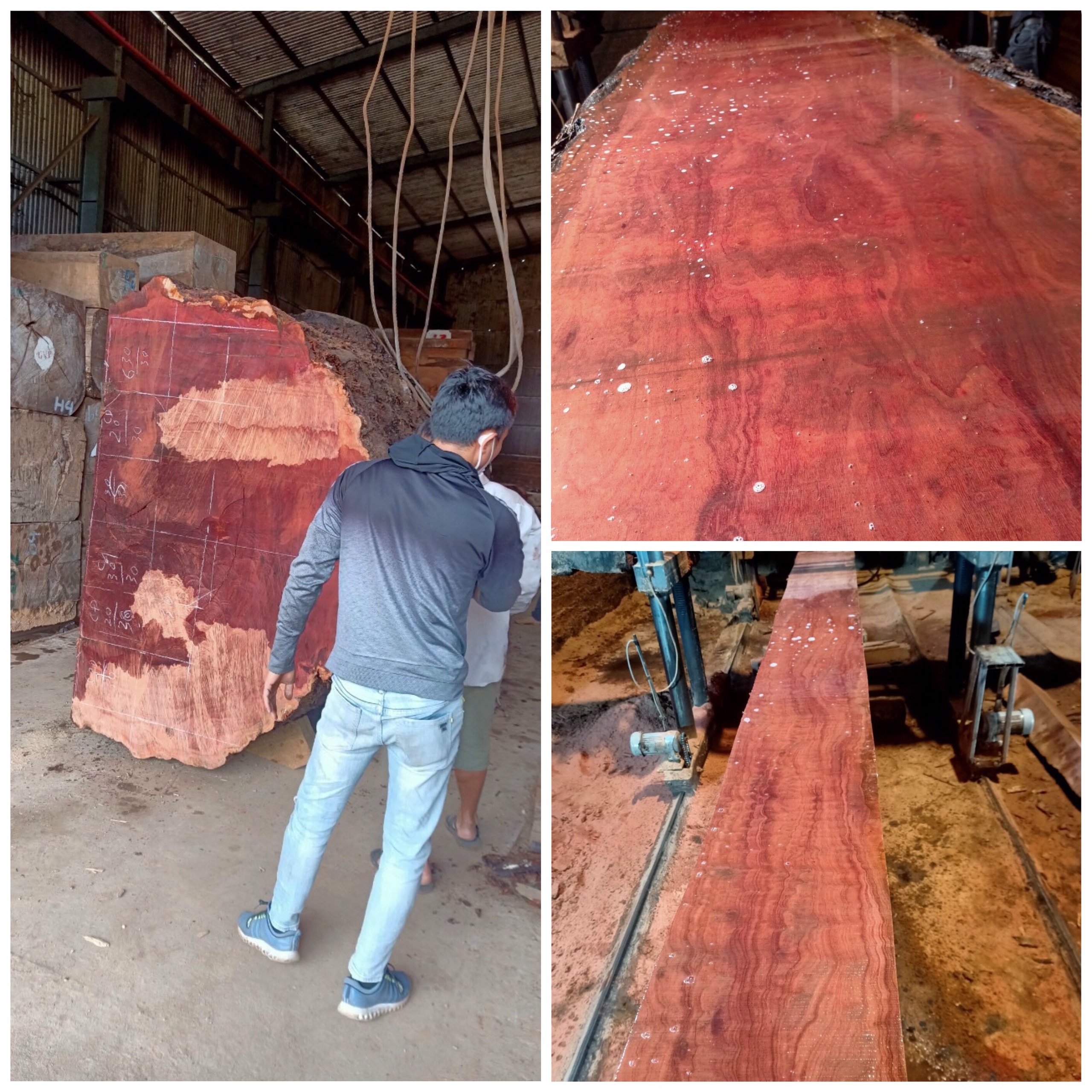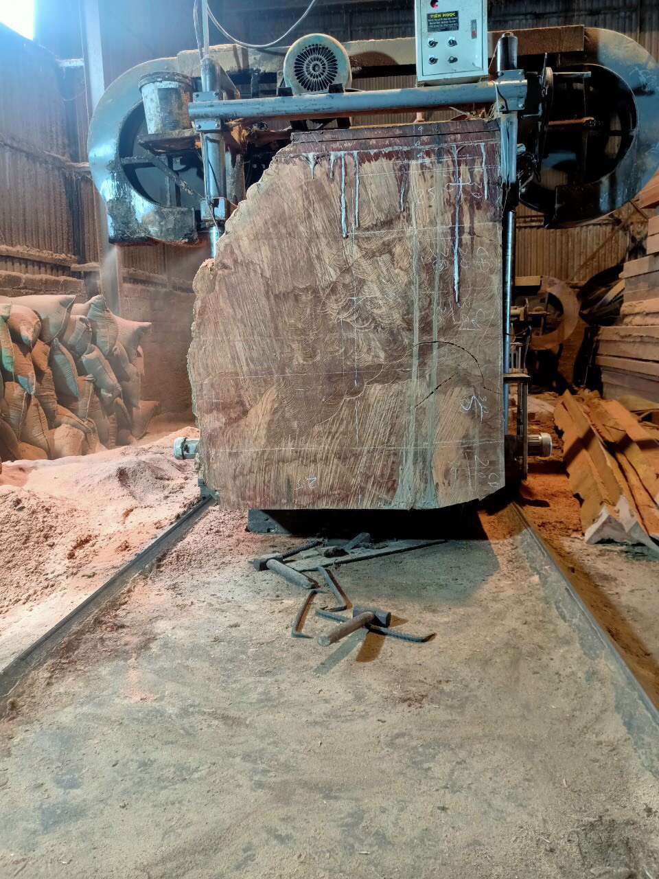 ♦ Đầu tiên nguyên liệu là những cây gỗ to được nhập khẩu từ Nam Phi sẽ được sử dụng máy móc thiết bị đặt lên máy xẻ.